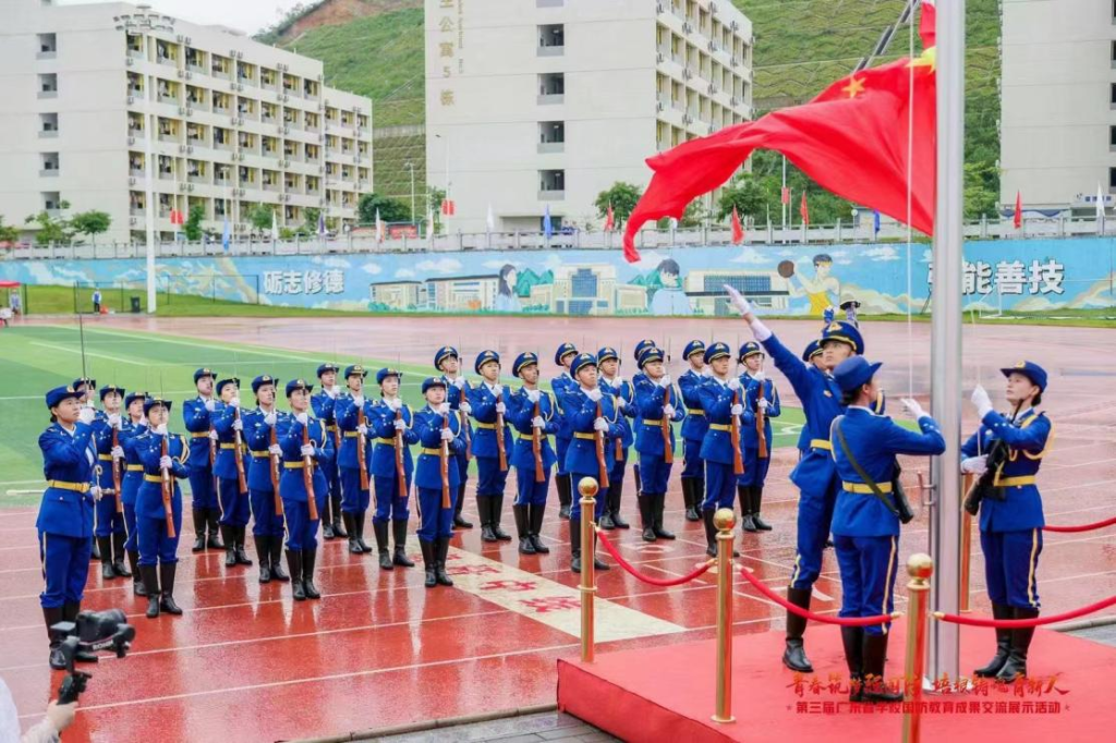 本届全省学校国防教育成果交流展示活动由广东省教育厅、广东省军区战备建设局、广东省军区动员局、共青团广东省委员会联合举办的“青春筑梦强国防 培根铸魂育新人 ”第三届全省学校国防教育成果交流展示活动在广东科贸职业学院隆重举行。来自省内本科院校、高职院校、高中学校共170余所,师生代表7000余人参加本次活动。我校国旗护卫队奋勇争先,以标准规范的动作、昂扬向上的精神风貌,在64所高职院校交流展示比赛中脱颖而出,成绩排名14并荣获全省高职院校组国旗护卫队比赛二等奖。