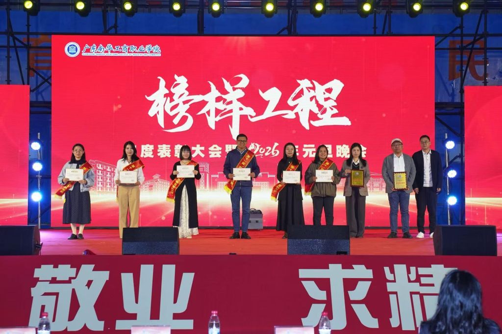 岁序更替,华章日新。12月23日晚,学校“榜样工程”年度表彰大会暨2026年元旦晚会在清远校区体育馆隆重举行。学校党委副书记、副校长严新出席并致辞,全国劳动模范、全国技术能手唐奇,校领导、党委委员,各二级学院党政负责人,职能部门负责人及师生代表共同参加。