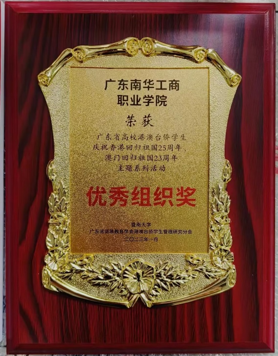 广东省教育厅指导,暨南大学与广东省高校港澳台侨学生管理研究联盟主办,香港特别行政区政府驻粤经济贸易办事处支持的“广东省高校港澳台侨学生庆祝香港回归祖国25周年、澳门回归23周年主题系列活动”在2022年6月-9月举行,我校荣获优秀组织奖。