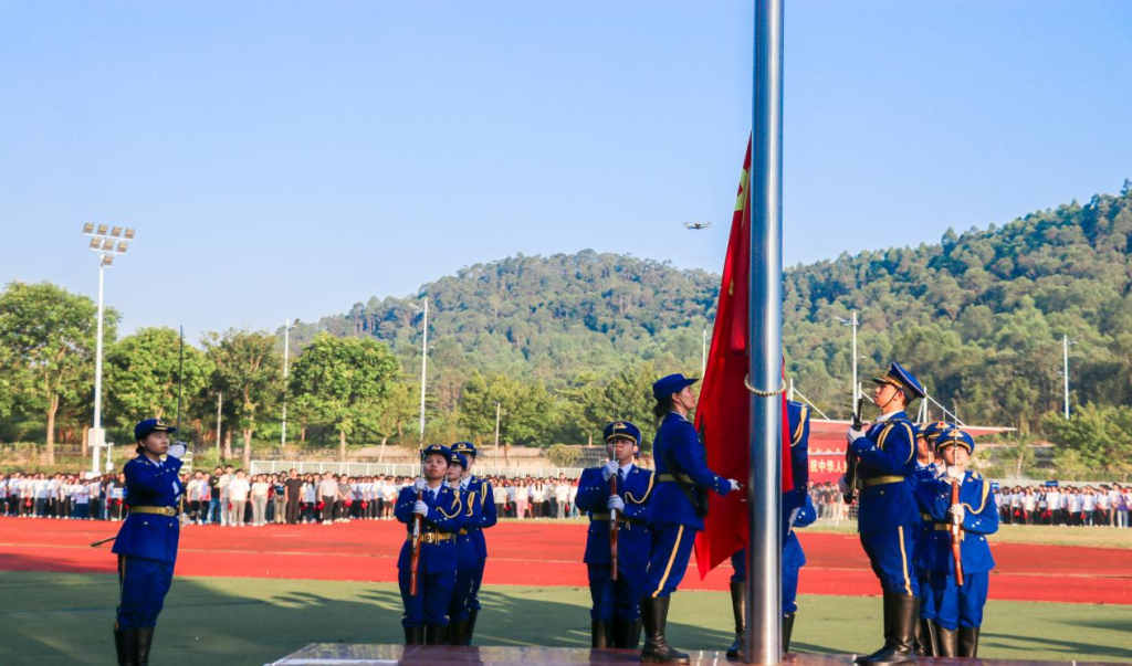 礼赞新中国,奋进新时代。9月30日,学校在清远校区足球场隆重举行“建国七十五载 辉煌岁月铸华章”升国旗仪式,庆祝中华人民共和国成立75周年,弘扬爱国主义精神,深化学校思想政治工作体系建设。学校党委书记、校长林海出席仪式并讲话。学校领导班子成员以及万名师生参加了活动。