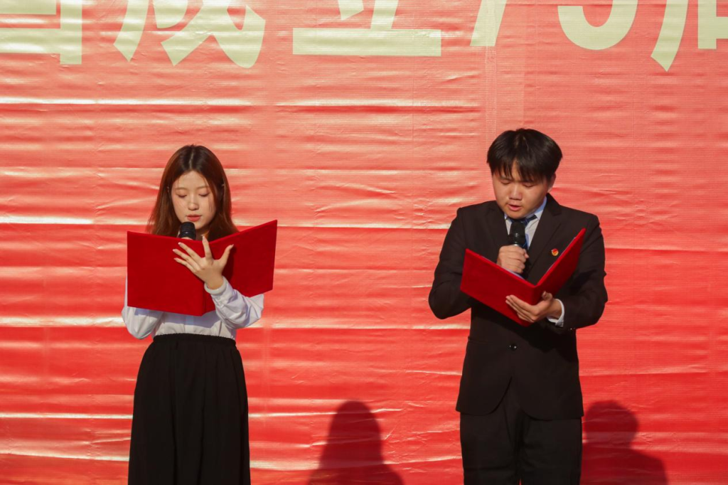 学生代表深情朗诵《我的祖国》,他们用真挚的语言,描绘了祖国的大好河山和辉煌成就,表达了对祖国母亲深深的眷恋与祝福。