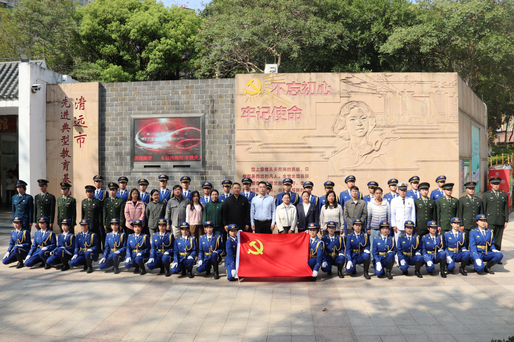 42日,学生工作党支部组织退伍学生与国旗护卫队学生代表前往清远市向秀丽烈士陵园,开展“清明祭英烈”主题党日活动,缅怀革命先烈,传承红色基因。