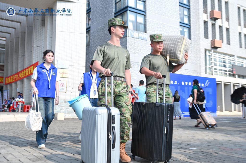今年,学校进一步优化迎新工作机制,提供的多元服务让新生与家长倍感温暖。学校在清远高铁站开通接站服务,并安排多辆校内转运中巴和电瓶接驳车,解决了新生和家长们的交通难题。此外,学校开通迎新照片直播服务,数名校园摄影师实时捕捉新生报到的鲜活瞬间。迎新现场,身着志愿服的志愿者和训练服的军政教导队、国旗护卫队成为最动人的“风景线”。从引导新生扫码核验、协助办理校园卡,到帮忙搬运行李、解答疑问,始终保持着热情的笑容与耐心的态度。