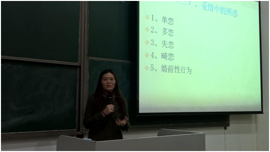 本次讲座特邀了原院心理辅导中心主任吴清兰老师担任主讲。吴老师首先从学生们最关注的情感话题入手开讲,当下年轻人如何正确面对恋人之前的情感问题的确引人深思,这不仅是用心对待彼此,方法能否运用恰当也尤为重要,“女生渴望被尊重,男生渴望被肯定。”老师如是说。在讨论性行为时,吴老师列举了她职业生涯所遇到一个个生动鲜活的事例,告诉大家不安全性行为所导致的后果不敢想象,在座同学不禁深皱眉头,表情沉重,这次讲座所收到的效果不言而喻。最后老师向同学们解释了一些性变态行为名词,让同学们了解之余,还能懂得如何防范侵害,沉着应对突发事件。整场讲座中,吴清兰老师和同学们一起探讨爱情与性的社会问题,同学之间的情感问题,还有分享她对待这些问题的观点,着实让同学们受益匪浅,获益不少,本次讲座最终在同学们热烈的掌声中落幕。