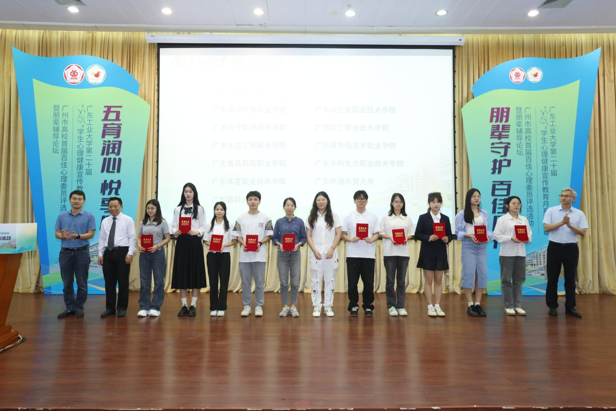 5月23日,广州市高校首届心理委员工作研讨会暨朋辈辅导论坛在广东工业大学召开。我校信息工程与商务管理学院张明涌、建筑与艺术设计学院郑南莹两位同学荣获“广州市百佳心理委员”称号。