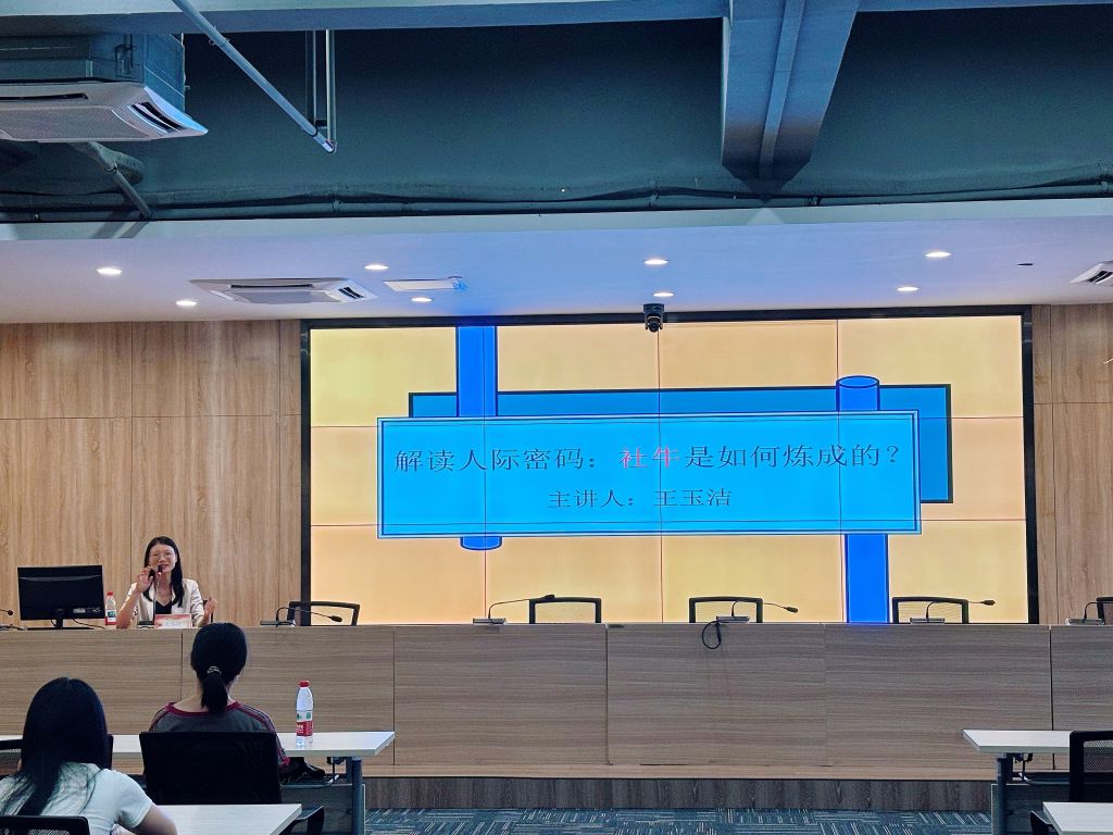 王玉洁从“人具有社会性”这一本质切入,点明良好社交是获得健康快乐与有效解决问题的关键,系统剖析“社交达人”必备的五项核心能力:建立关系、自我表露、情感支持、适度拒绝与冲突处理。随后,她将理论转化为实践,提炼出三大进阶招法:以“建立关系”为基础,用“情感支持”作深化,让“冲突处理”成为保障。整场讲座层层递进,理论与实践交融,现场互动频频,气氛热烈。