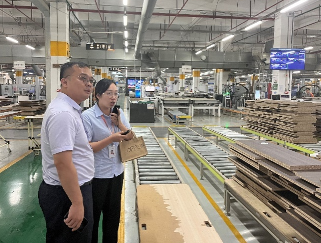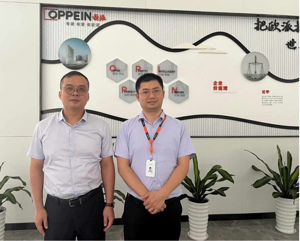 随后,余喜文一行来到位于广清产业园的欧派家具集团清远生产基地总部,在人力资源部招聘经理何诗炜的陪同下参观了欧派定制家具生产装配线。在交流会上,欧派家具集团人力资源部负责人钟菠详细介绍集团在清远的发展规划及用工需求,对未来与学校持续合作充满信心。余喜文对欧派家具集团的支持表示感谢,期待未来双边更深层的合作。