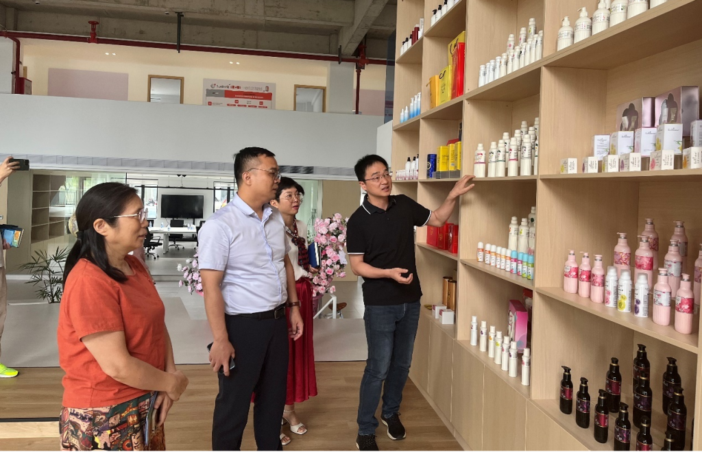 余喜文一行首先深入到广州生本新营销管理有限公司进行实地调研并参加座谈会。广州生本新营销管理有限公司副总经理曾浩对我们学校一行到访表示热烈欢迎,人事部门杨爱军经理介绍了公司的招聘计划及合作意向。余喜文介绍了学校发展历程和毕业生基本情况,向广东清远人力资源服务产业园的大力支持表示感谢。座谈会后,余喜文一行在曾总的带领下详细参观了公司的直播工作室和产品展示。