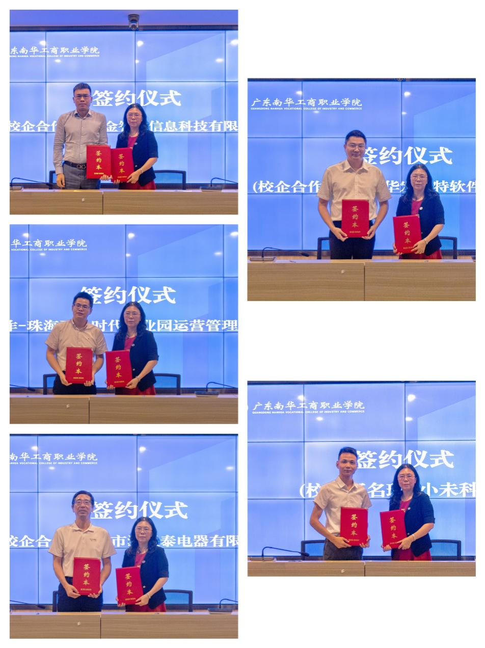珠海金智维信息科技有限公司、珠海再生时代产业园运营管理有限公司、小未科技(珠海)有限公司、珠海市润星泰电器有限公司、广东东华发思特软件有限公司等5家与我校签订了校企合作协议,各企业代表公司负责人向学校介绍了公司发展和人才需求情况,各二级学院积极提问,与用人单位作详细交流。