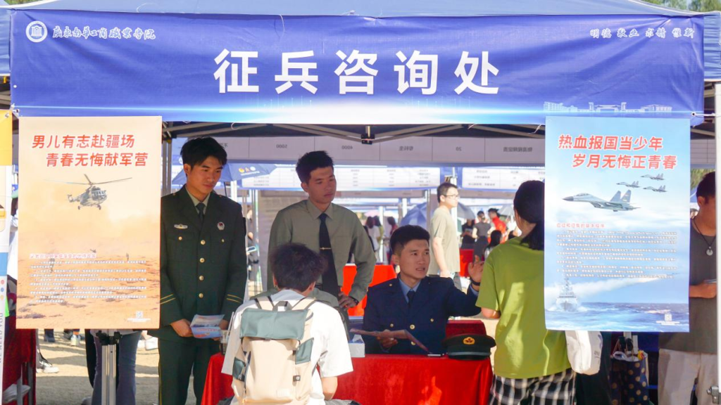 作为我校的特色服务板块,招聘会现场设置就业指导服务专区,包括征兵咨询、AI简历门诊、AI面试指导三个服务区,专区前人头攒动。咨询征兵事宜的大学生络绎不绝,军政教导大队的队员一边发放宣传资料,一边介绍报名安排、入伍条件、服役待遇、退役补偿等政策。2025届毕业生肖同学实际体验了AI赋能系统。他表示,AI智能简历系统显著提升其简历撰写的效率,使简历内容更加精准,“面试模拟会根据我的简历个性化设置面试问题。面试结束后,系统对我的表现打分、提出改进建议。模拟面试提出的改进建议,我立即在面试中派上用场啦”。