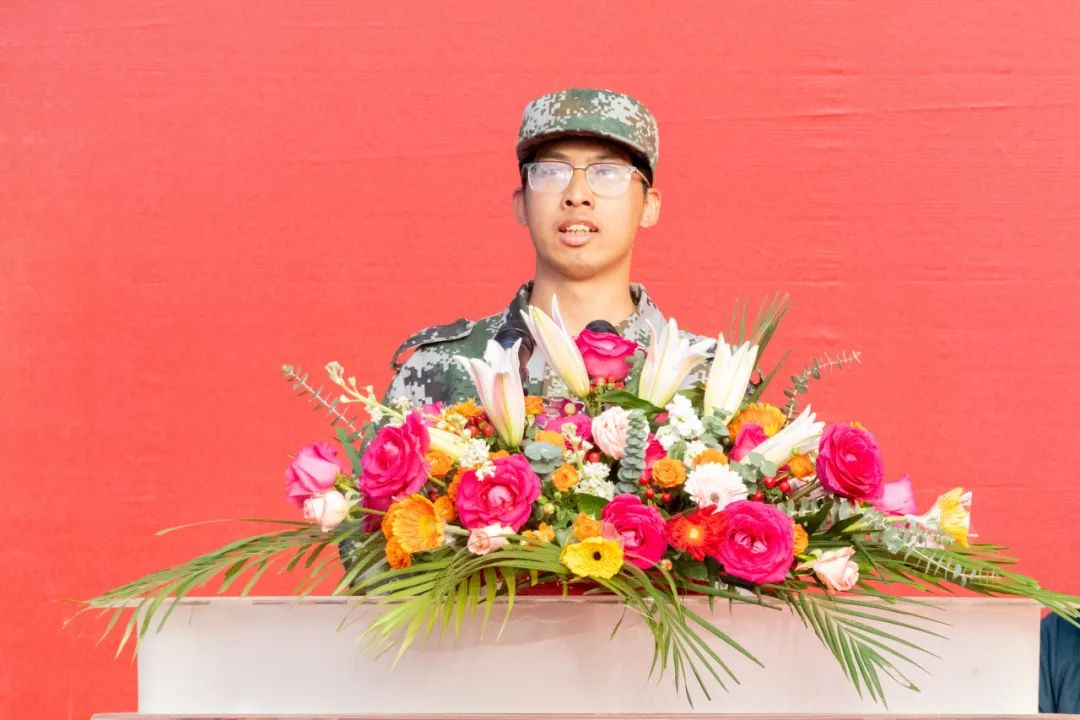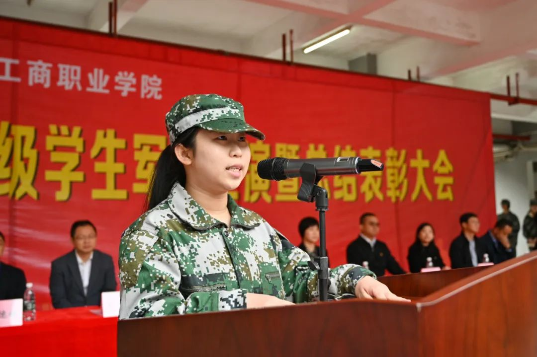 23级工商1班的张靖林作为军训优秀学生代表发言,他表示军训是大学生活中的一段特殊经历,它不仅是磨砺意志力和锻炼体魄的过程,更是培养团队协作和集体荣誉感的机会;在军训中学会了用信念和毅力克服困难,学会了如何与他人合作、互相帮助、互相学习,体会了纪律和规范个人行为的重要性,军训让大家在未来的学习和生活中受益终身。