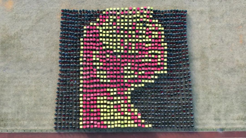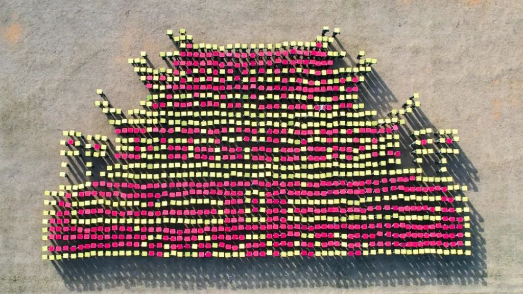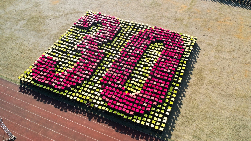 由1200余名新生组成的花样演练方阵震撼登场,他们通过精巧的手势艺术和高度的集体意识,托起手中的卡纸组合出各种象征图案。铿锵有力的口号声带着南华学子们的凌云壮志,直冲云霄!