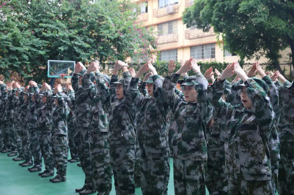 学校领导在军训总结讲话中,代表学校党委向付出辛勤劳动、认真负责的教官们表示感谢,向尽心竭力、任劳任怨的老师们致以问候,向圆满完成军训的 23 级全体同学表示祝贺,对军训所取得的成绩表示肯定,对获奖的优秀集体和先进个人表示应树为榜样。希望同学们将军训中锻炼的吃苦耐劳精神发挥到孜孜以求的学问之路上、勇攀高峰的人生追求中。希望同学们立大志、明大德、成大才、担大任,在未来三年大学生活学有所成,在南华得到思维和能力的提升,为未来更坦然接受遇到的一切挑战和困难做好充分的准备,勇敢焕发多彩的青春!