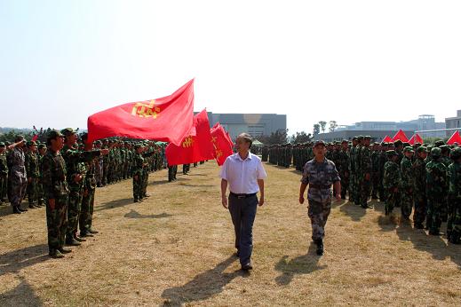 学院院长易江博士在叶卫华队长的陪同下检阅受训学员