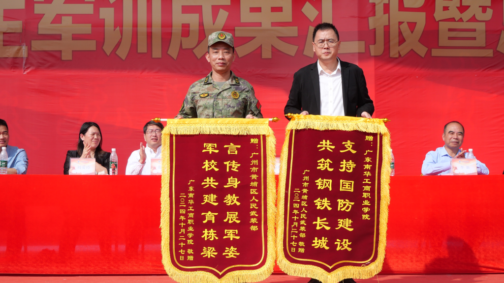 10月27日,学校在清远校区足球场隆重举行2024级学生军训成果汇报暨总结表彰大会。学校党委副书记、副校长严新出席大会。