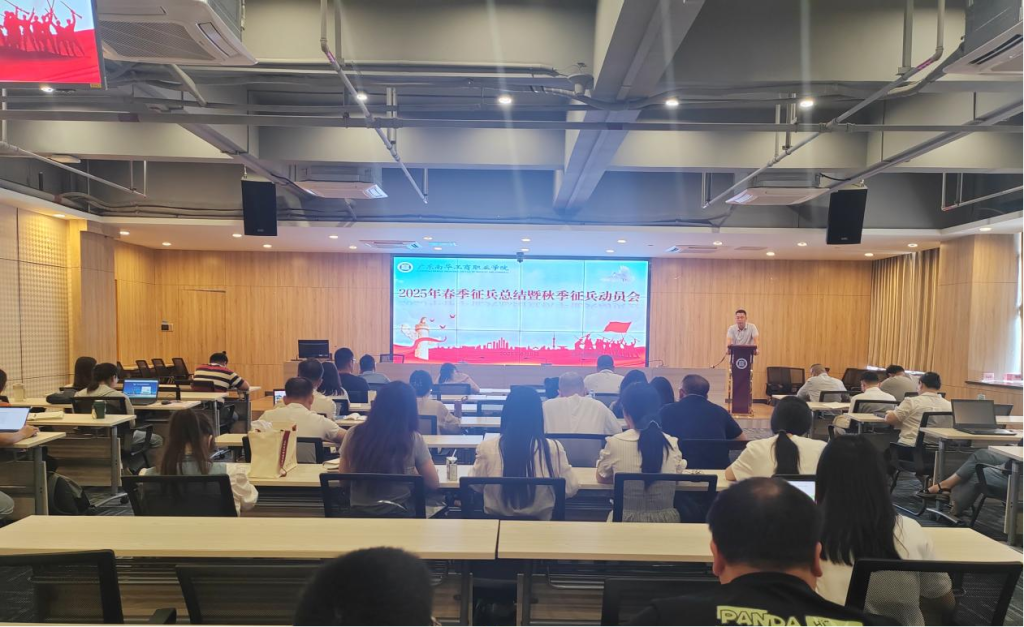 6月9日,学校召开2025年春季征兵动员暨秋季征兵动员会,全面总结2025年春季征兵工作成效与不足,并部署2025年秋季征兵工作。