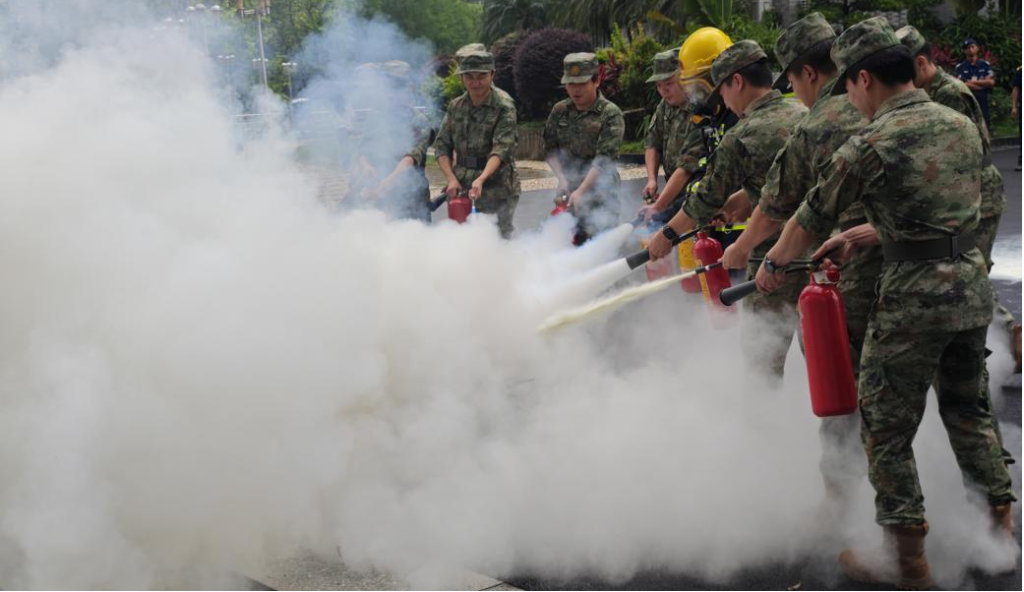 为期半天的培训,退伍学生完成灭火器四步操作法(提、拔、握、压)、消防水带快速连接出水作业灭火等技能训练,并模拟宿舍楼道浓烟、电器起火等场景,进行灭火器教学操作、防火服穿戴教学及实操灭火演练。