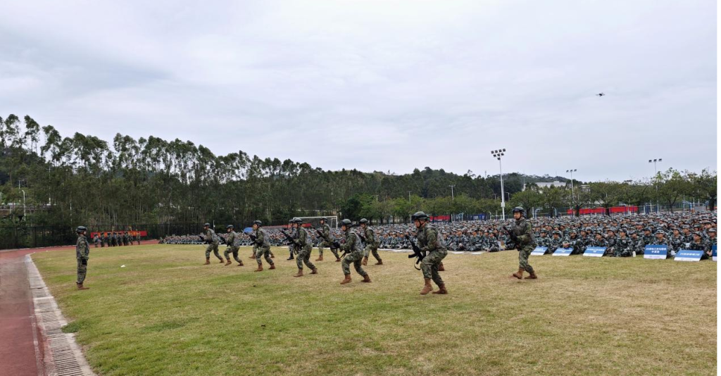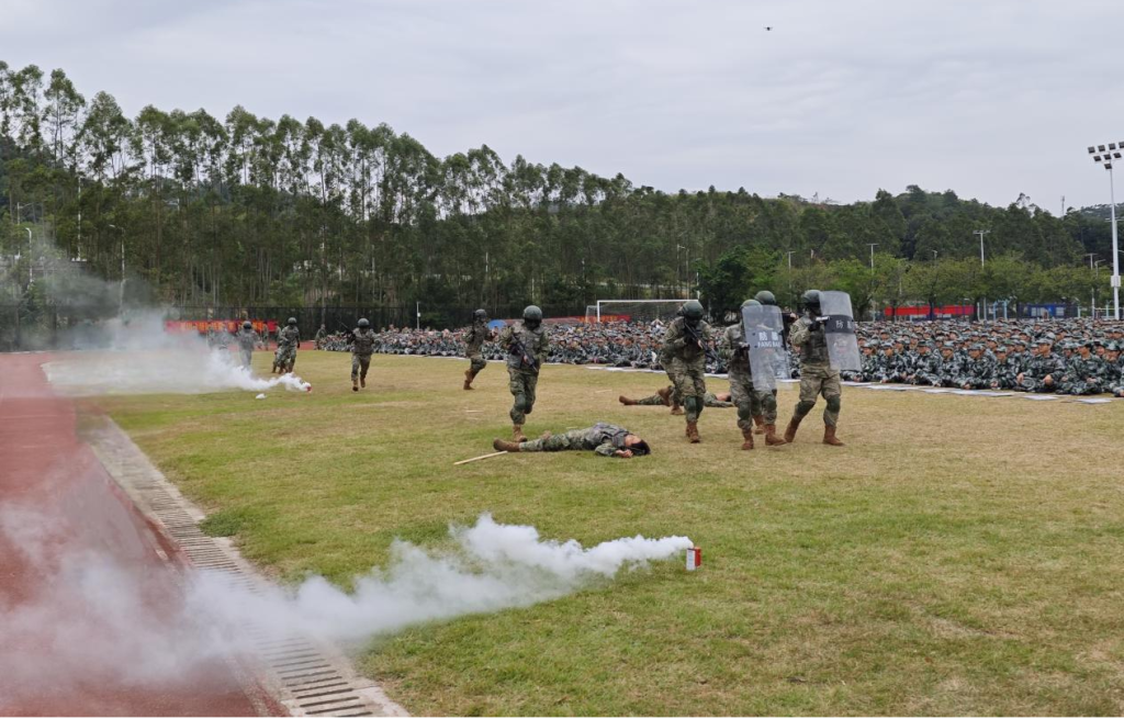 教官风采展示环节将现场气氛推向高潮。教官们动作规范、斗志昂扬,队列表演整齐划一,格斗演示刚劲有力,充分展现了过硬的军事素养,赢得师生阵阵掌声。