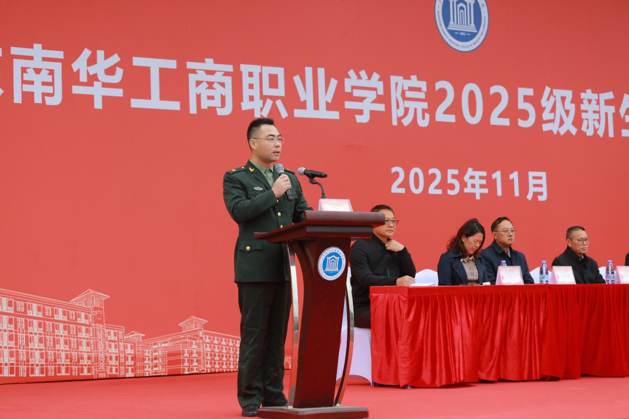 党委学生工作部(武装部)副部长陆飞宇作军训动员讲话,他勉励全体同学以军人的标准严格要求自己,锤炼意志、强健体魄,传承红色基因,厚植家国情怀,以饱满的热情和昂扬的斗志投入军训,为大学生活奠定坚实基础。