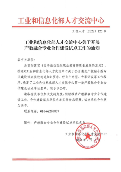 工业和信息化部人才交流中心关于开展产教融合专业合作建设试点工作的通知(序号93)