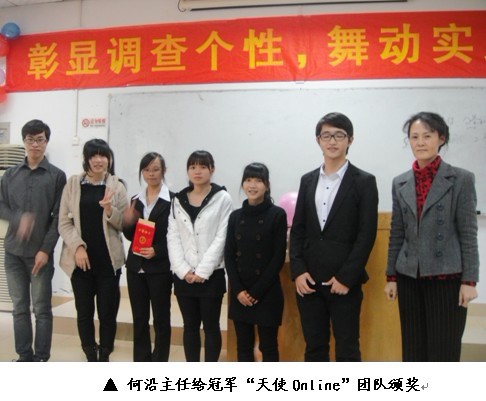 我系何沿主任、刘亚玲老师、陆淑珍老师、张信阳老师作为评委认真评分并对每个参赛小组的表现做精辟点评,让8个参赛小组受益匪浅。这次调查活动中让我们深有体会的是,我们要用实践去感受社会,用实践去关爱社会,同时也用实践来锻炼自我。