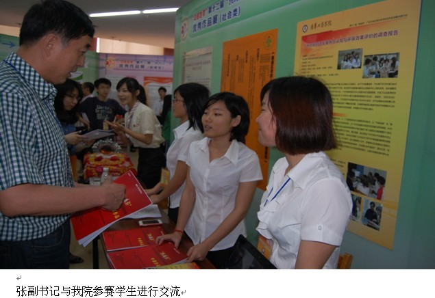 开幕式结束后,我院张皖明副书记一行到终审决赛优秀作品展现场参观,并分别到我院两个作品展位进行指导,看望参赛的指导老师和学生。