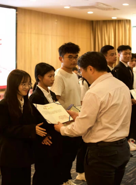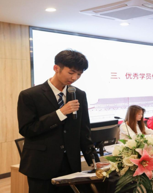 紧接着进入优秀学员颁奖仪式和优秀团队颁奖仪式。信息工程与商务管理学院党总支常务副书记郑海清老师和学院团委书记陈卫强老师分别为优秀学员和优秀团队颁奖。