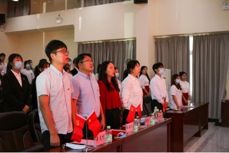 大会伊始,全体起立,奏唱国歌。会议在庄严的国歌声中拉开序幕。紧接着,信商学院团委书记龙俏颖致辞,她对一年以来为团学工作付出的辛勤汗水的学生干部们表示衷心感谢,同时,期待新一届学生干部可以在已取得的成绩上,继续努力,不忘初心,砥砺前行,开拓创新,不断推动学院团委学生会工作取得更大的进步。
