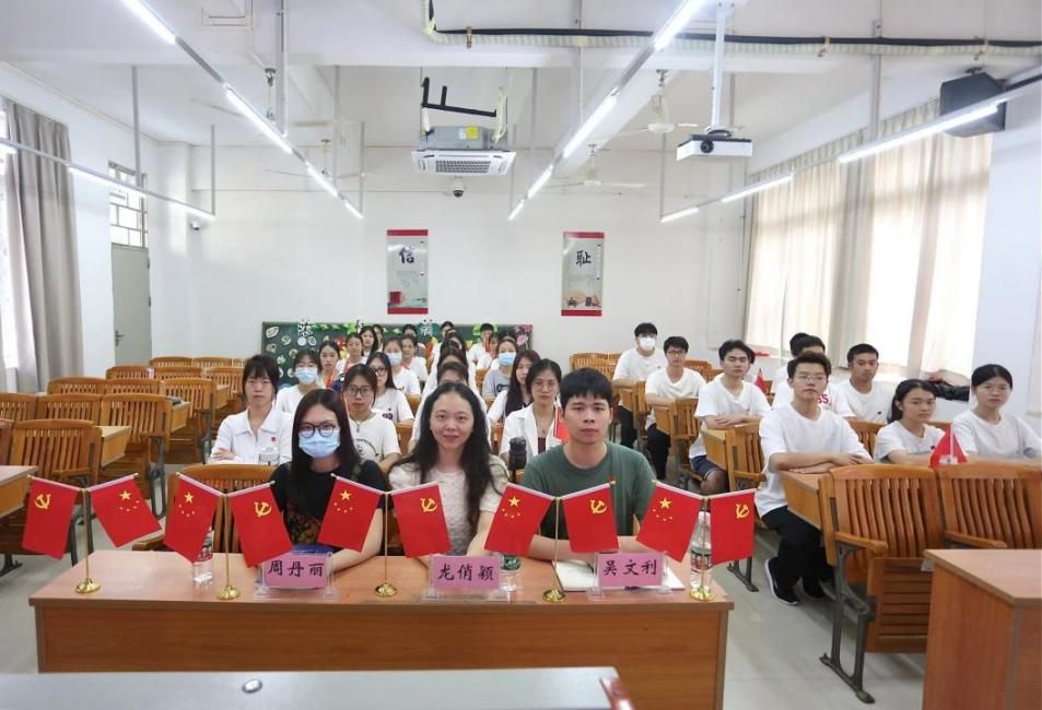 紧接着,团支书叶舒云带领全体团员重温入团誓词,在庄严的宣誓仪式中,全体团员高举右拳,在鲜艳的团旗下庄严宣读入团誓词。