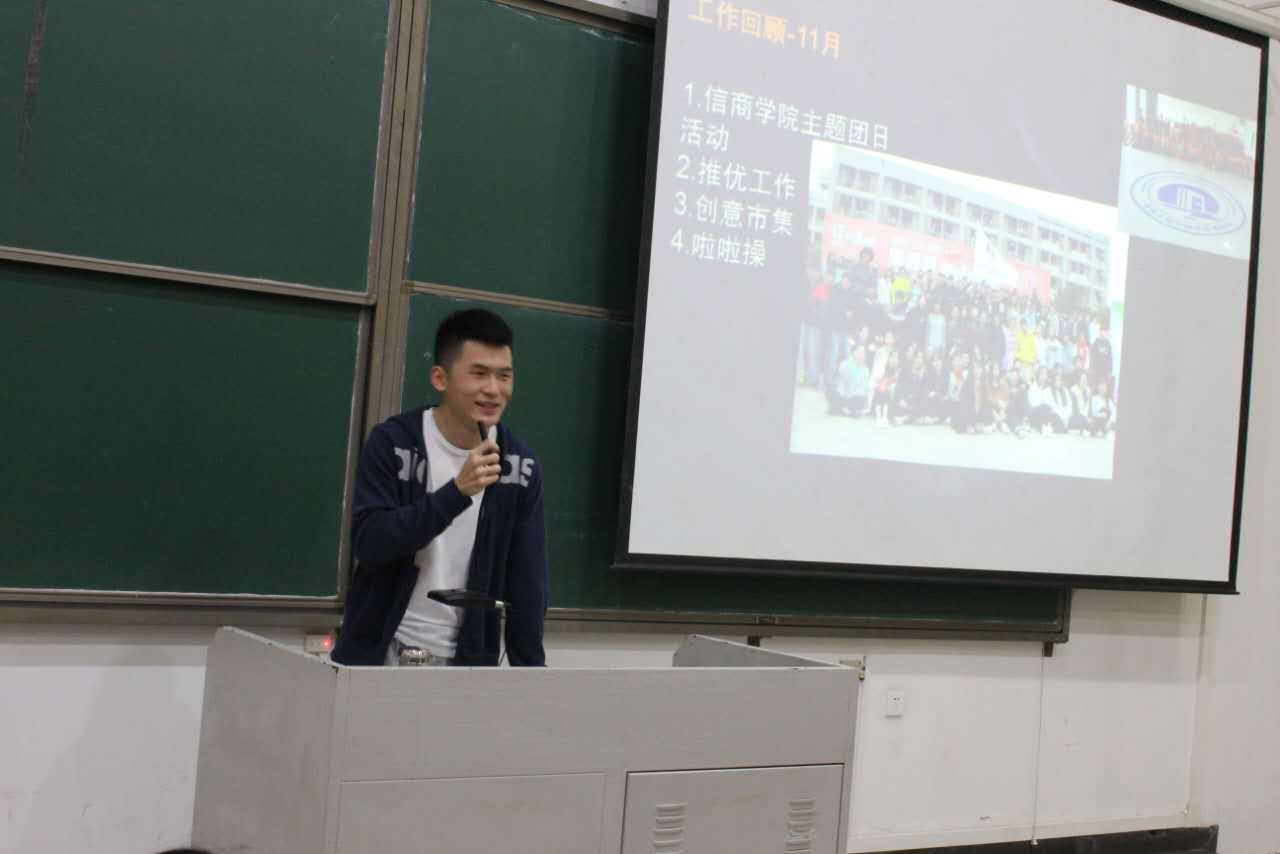 在信商学院团学副书记李家亨同学的精彩致辞下,团学新学期第一次全体会议正式拉开了序幕。李家亨同学总结了上学期工作的经验,并表扬了干事们很好地完成了信商学院上学期啦啦操、创意市集、电竞大赛、元旦晚会等大型团体活动;接着,向与会人员汇报了本学期的工作安排和提出了对各部门干事的希望。