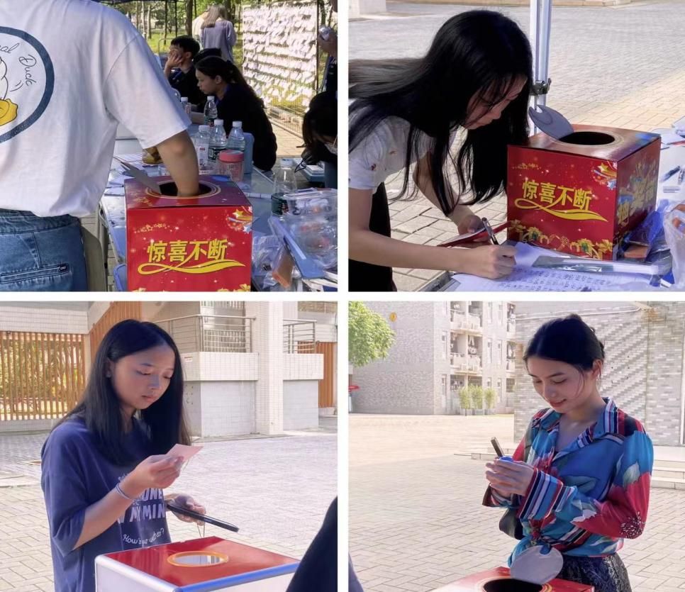 本次活动面向全校师生,分为三个环节。环节一是“用心说话,以纸传情”——盲盒信件活动。上午参与的同学写下信件放入盲盒中,下午参与的同学从盲盒中抽取信件阅读。以传统信件的方式传递所思所想,所喜所爱,同学们不仅体验了字字落笔、句句寻思、向他人诉说的过程,还在收到一封未知的信件的同时结识到一位知心好友。