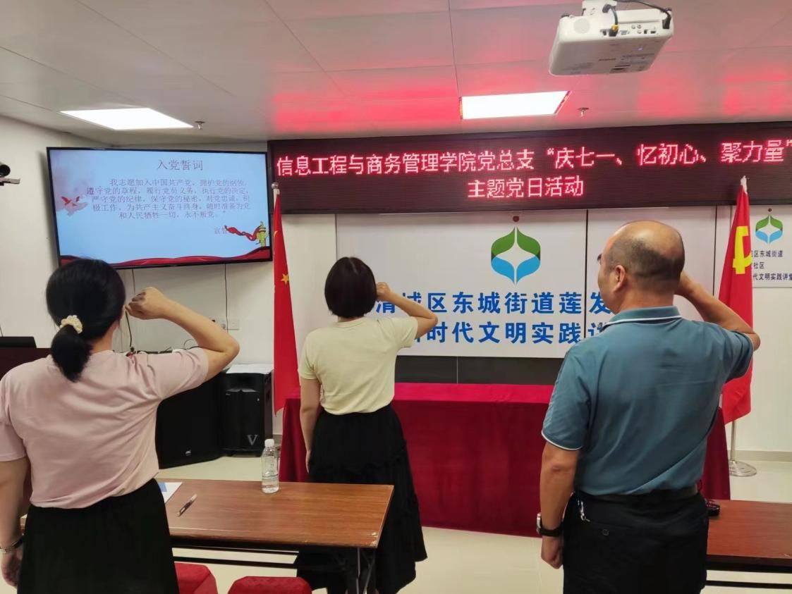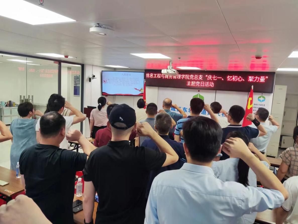 为庆祝中国共产党成立102周年,激励全体党员教师牢记党的宗旨,牢记入党初心,7月4日,信息工程与商务管理学院党总支开展“庆七一、忆初心、聚力量”党员重温入党誓词以及廉政教育活动,信息工程与商务管理学院党总支全体党员教师参加活动,活动由信息工程与商务管理学院学生党支部组织委员梁晓允主持。