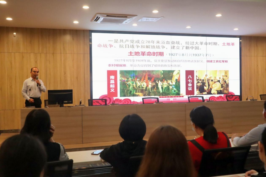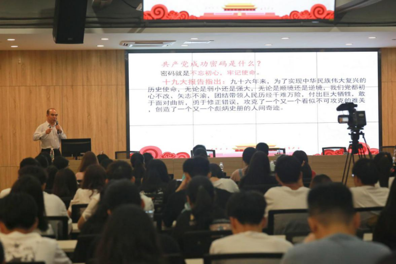 紧接着,李新书记围绕“民族之幸——历史选择了中国共产党”、“成功密码——不忘初心 牢记使命”、“红色基因——探索、奋斗、牺牲”、“实现辉煌——不忘初心 继续前进”四个主题深入开展授课,并强调了认真学习党的历史对继承和发扬革命传统、党的优良作风,对提高个人的认识能力和处理实际问题的能力的必要性。