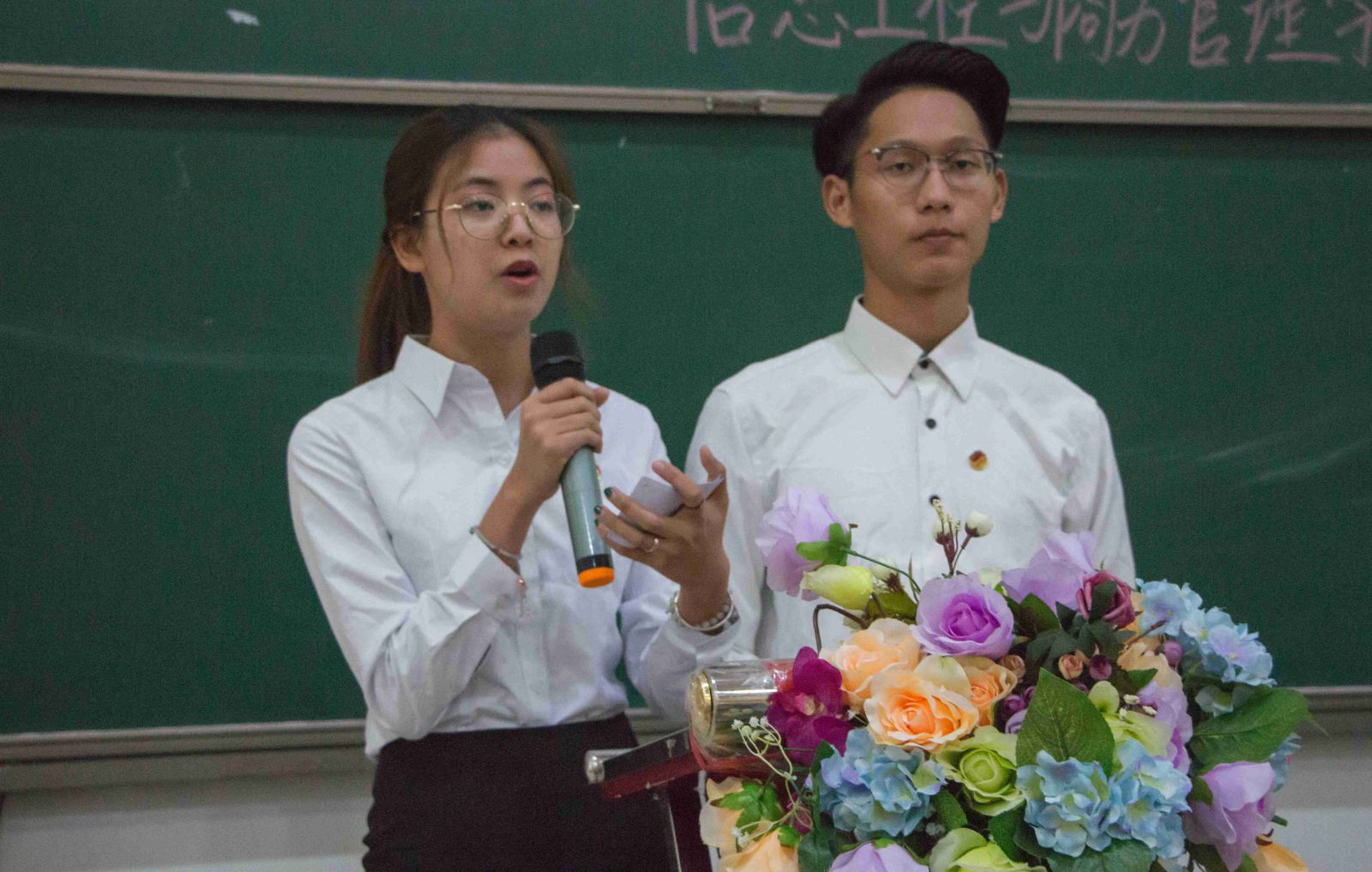 本次仪式分为11个流程。中午13:00活动正式开始。本次会议由信息学院院团委组织部干事邱洁标、钟海兰主持,他们首先对莅临本次的领导老师与同学们表示热烈欢迎,会议的第一项流程,全体起立奏唱国歌,礼毕。由主持人介绍党课中级培训班基本情况和党总支基本情况,之后对党课中级培训班中获得“优秀学员”称号的彭玉珊等11位同学进行表彰并由党总支书记李新和副书记凌红为他们颁奖,随后优秀员代表彭玉珊上台发言。之后李新书记上台讲话,他指出希望入党积极分子努力学习,勇于实践,争当先锋。在座的老师与入党积极分子都认真聆听。紧接着党总支组织委员、学生支部书记章小剑老师上台介绍入党流程,党总支凌红副书记介绍培养人的基本工作要求,入党积极分子都认真听讲。本次党课中级培训班由17级共75名经过团支部推优成功后的同学组成,培训时间从5月4日下午至5月5日下午完成中级班所有课程,5月7日完成党的基本知识培训中级班考试,整个过程同学们按照党校的纪律,学习积极,纪律表现良好。