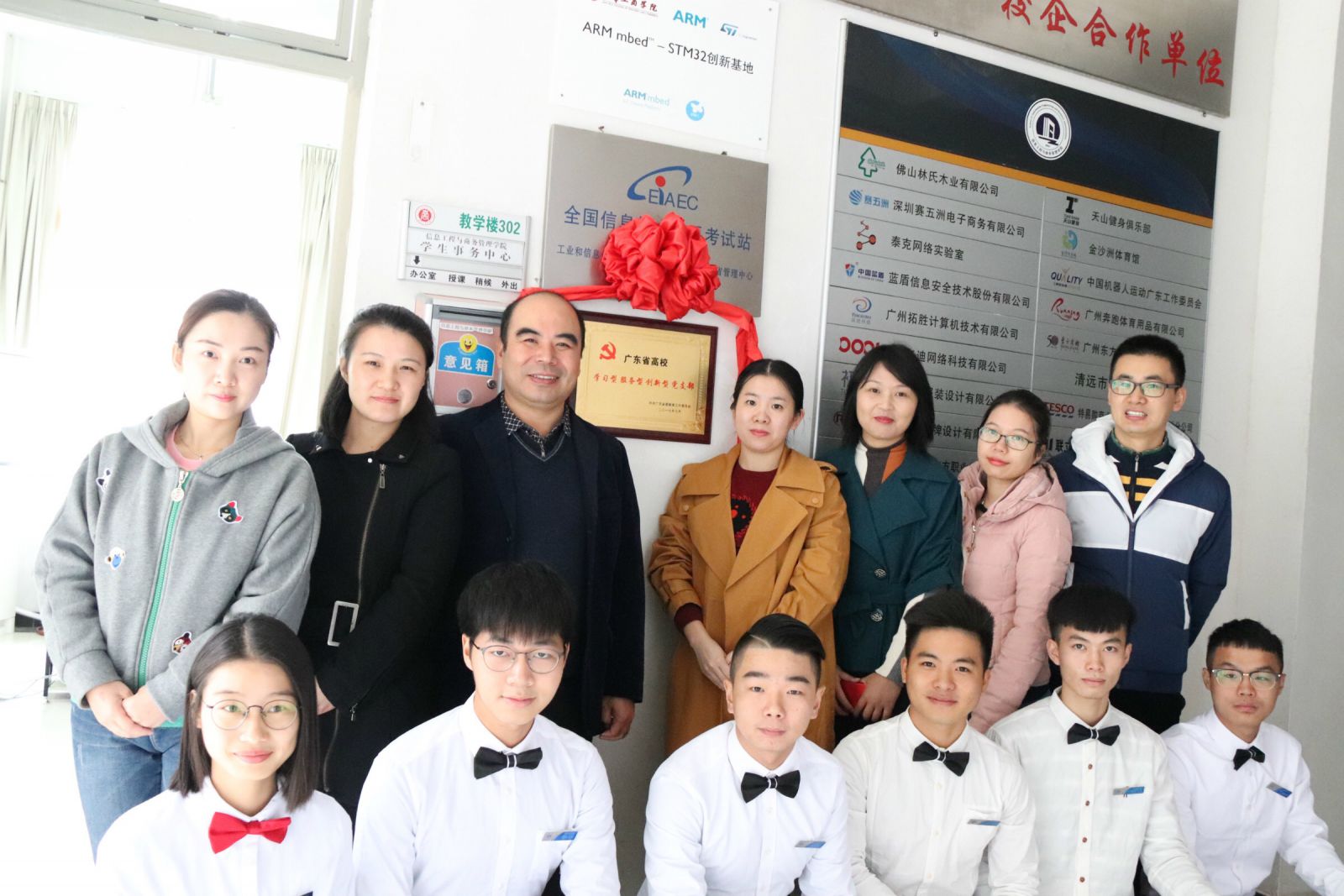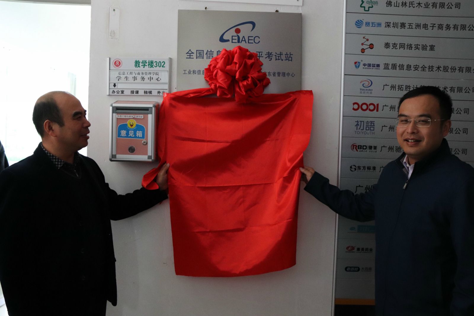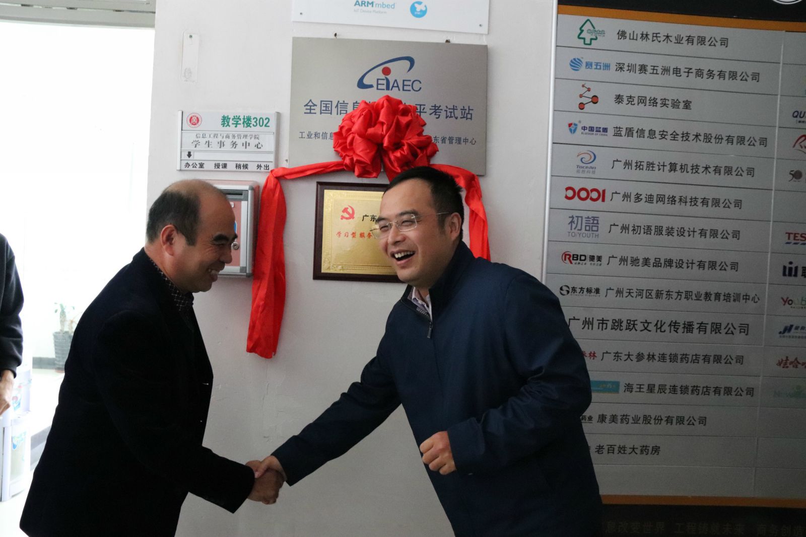 最后大家都移步到事务中心门口,由党委马栩生书记和信商党总支李新书记为学生支部被命名广东省高校“学习型、服务型、创新型”党支部揭牌。