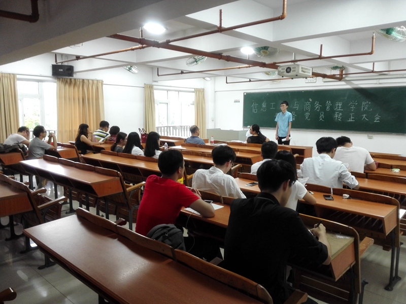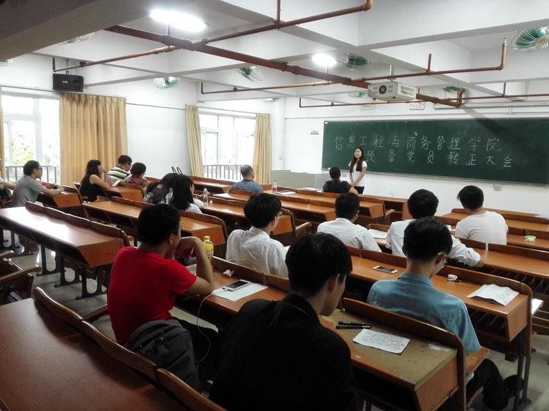 2017年6月2号下午4点,信息工程与商务管理学院党总支学生党支部在天河校区综合楼502课室举行了预备党员转正大会,学生党支部、预转正党员的培养人、14级34名预备党员到场参加了本次的预备党员转正大会,会议内容是对信商学院党总支学生党支部26名预备党员到期转正的问题进行讨论和表决。