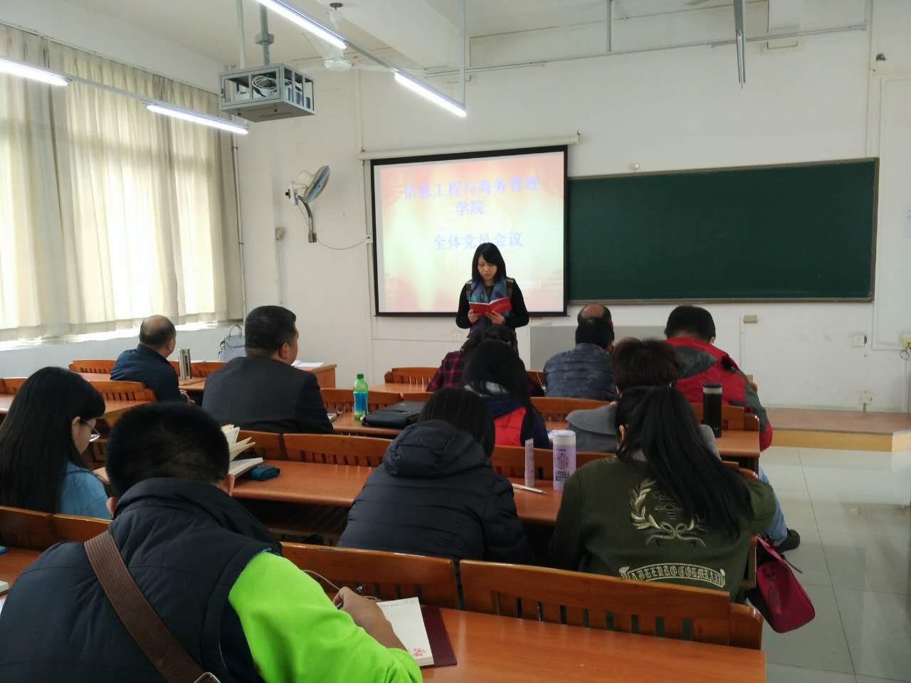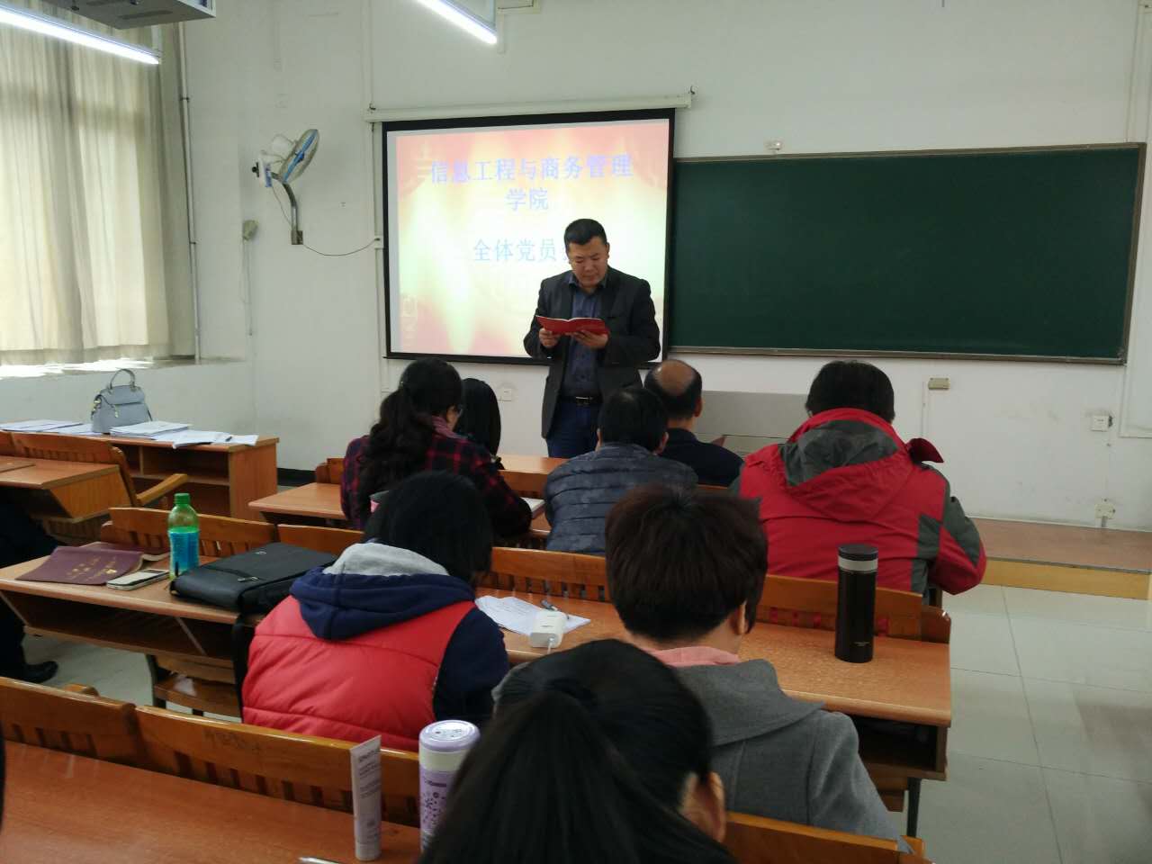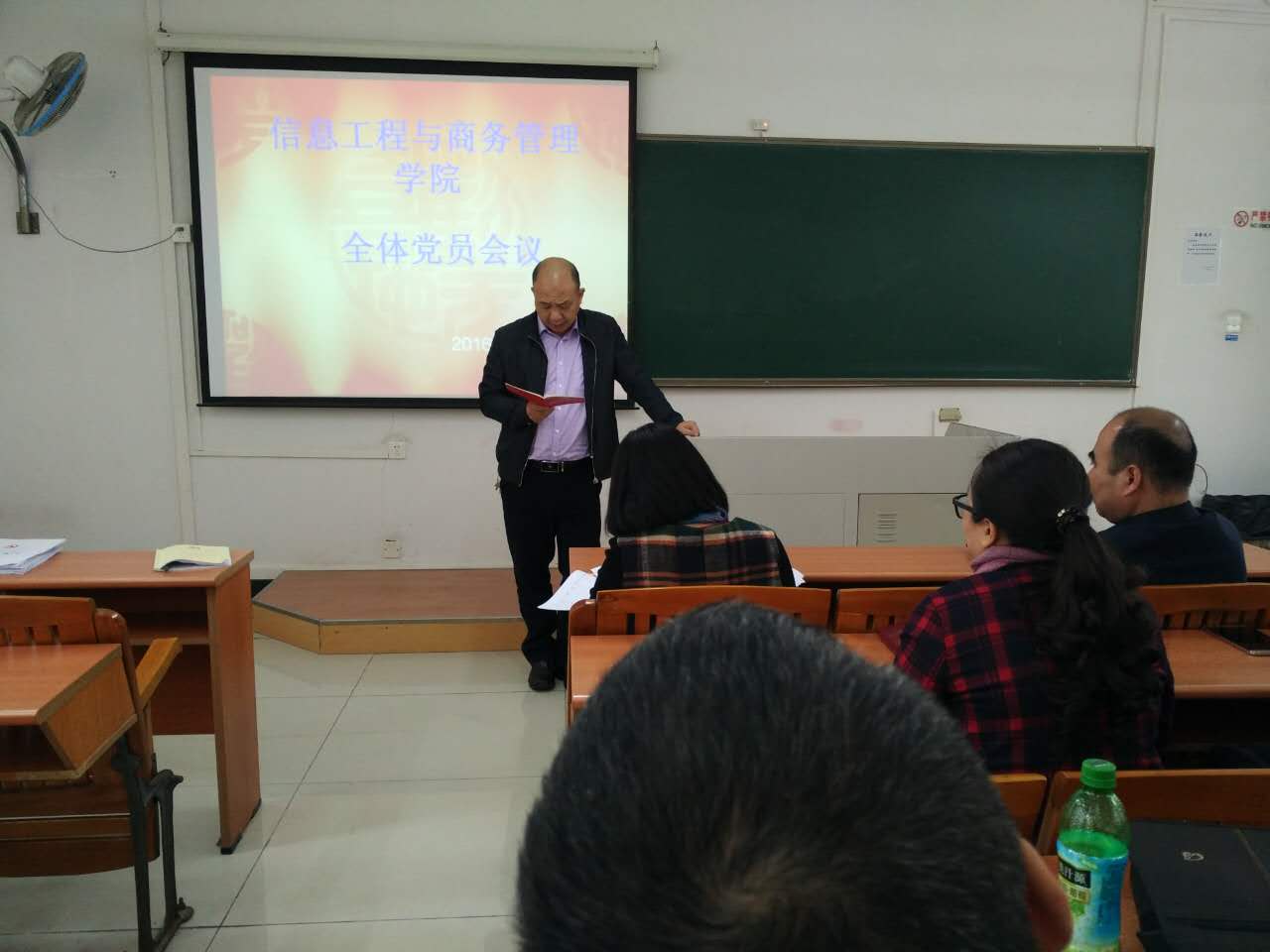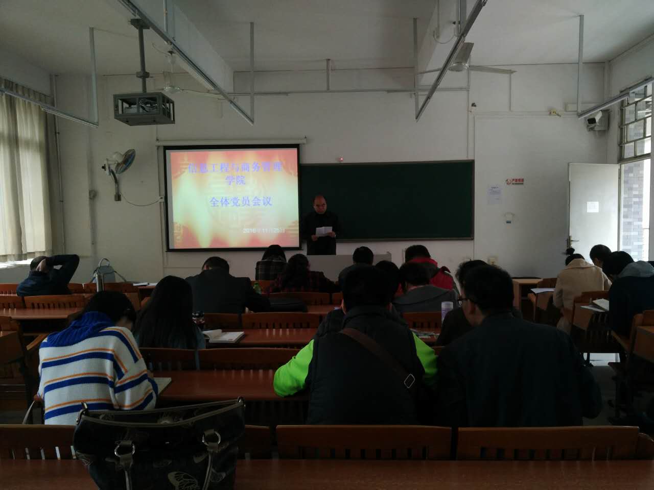 根据学院党委要求,信息工程与商务管理学院党总支于11月25日下午在清远校区召开专题组织生活会,开展党员民主评议。组织生活会和民主评议主要分为三大部分:1.支部对照检查和党员自评互评 2.总支对照检查和党员评议 3.学习关于新形势下党内政治生活的若干准则。