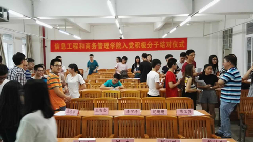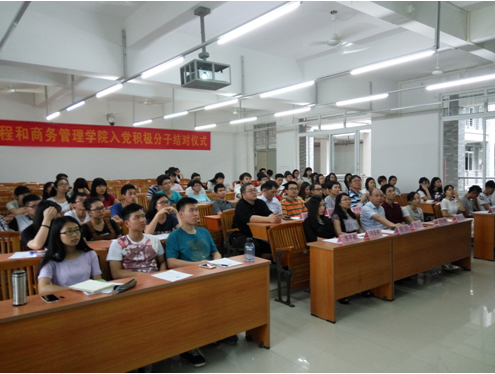信商学院于2016年5月24日晚6:00在清远校区319课室举行入党积极分子结对仪式,参加结对仪式的有信商学院总党支副书记凌红老师、纪检委员刘杰老师、信商学院部分教师党员以及61名入党积极分子,本次结队仪式由信商团总支组织部部长姚霖婷主持。