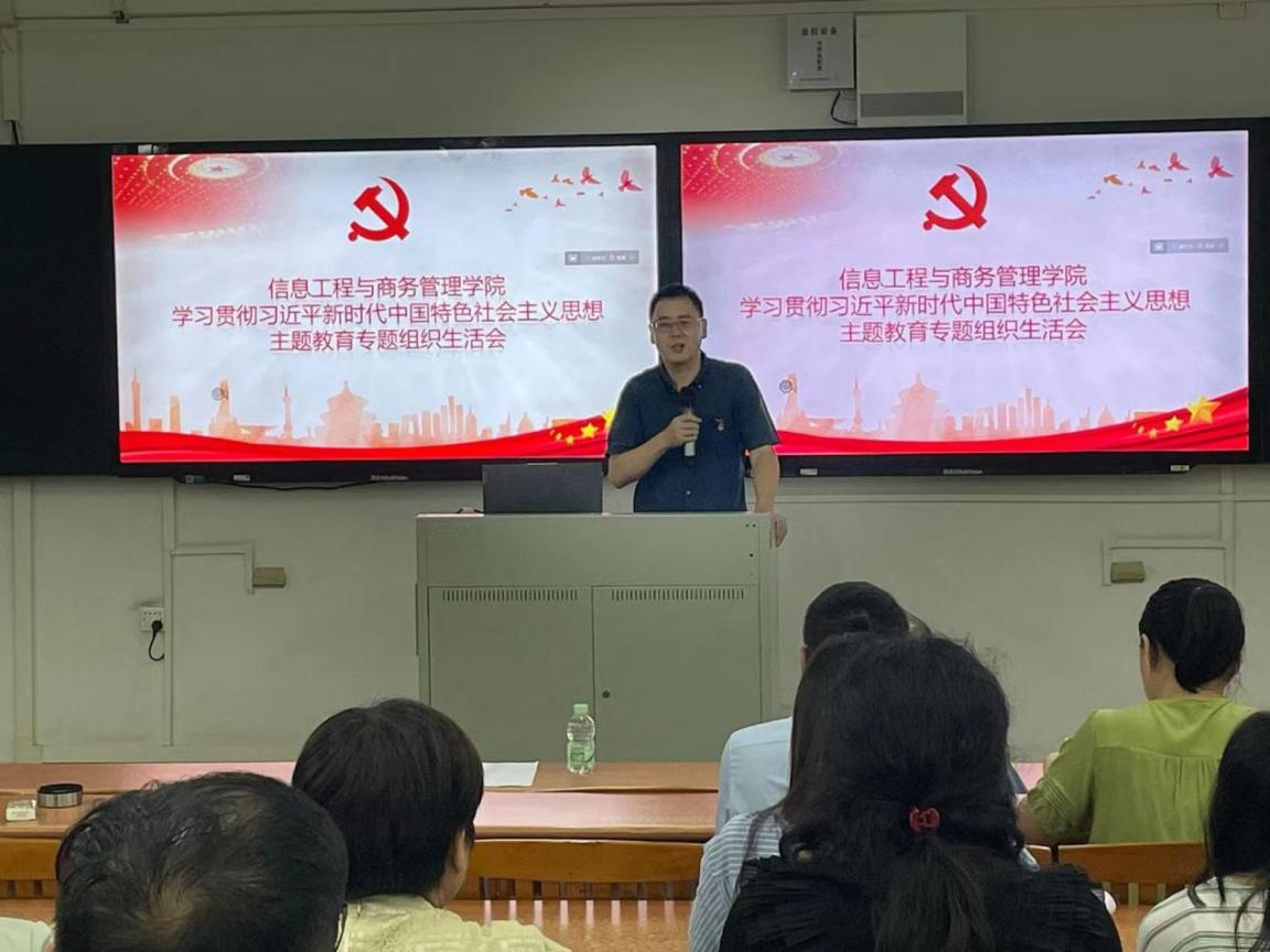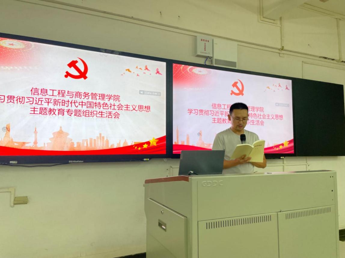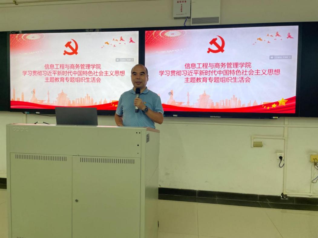 2023年9月12日18:30,信息工程与商务管理学院(下称“信商学院”)在清远校区召开学习贯彻习近平新时代中国特色社会主义思想主题教育专题组织生活会。学校党委副书记严新出席并点评,学院党总支书记李新作会前动员讲话,信商学院全体师生党员参加组织生活会。