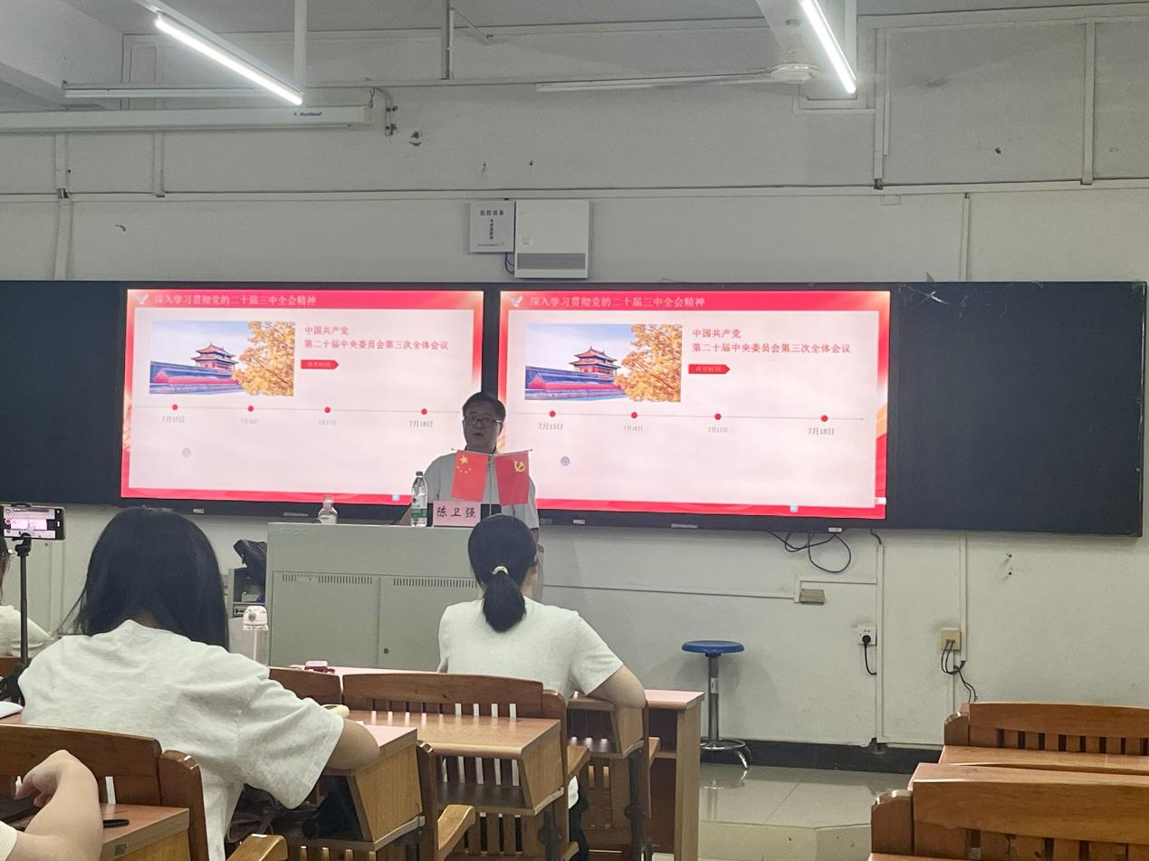 随后,学院学生党支部书记陈卫强以“党的二十届三中全会精神”为学员们解读新时代的使命与担当,结合职业教育特色与青年成长实际,引导学员深刻认识到肩上沉甸甸的责任,勇于挺膺担当新作为,争做有为青年。