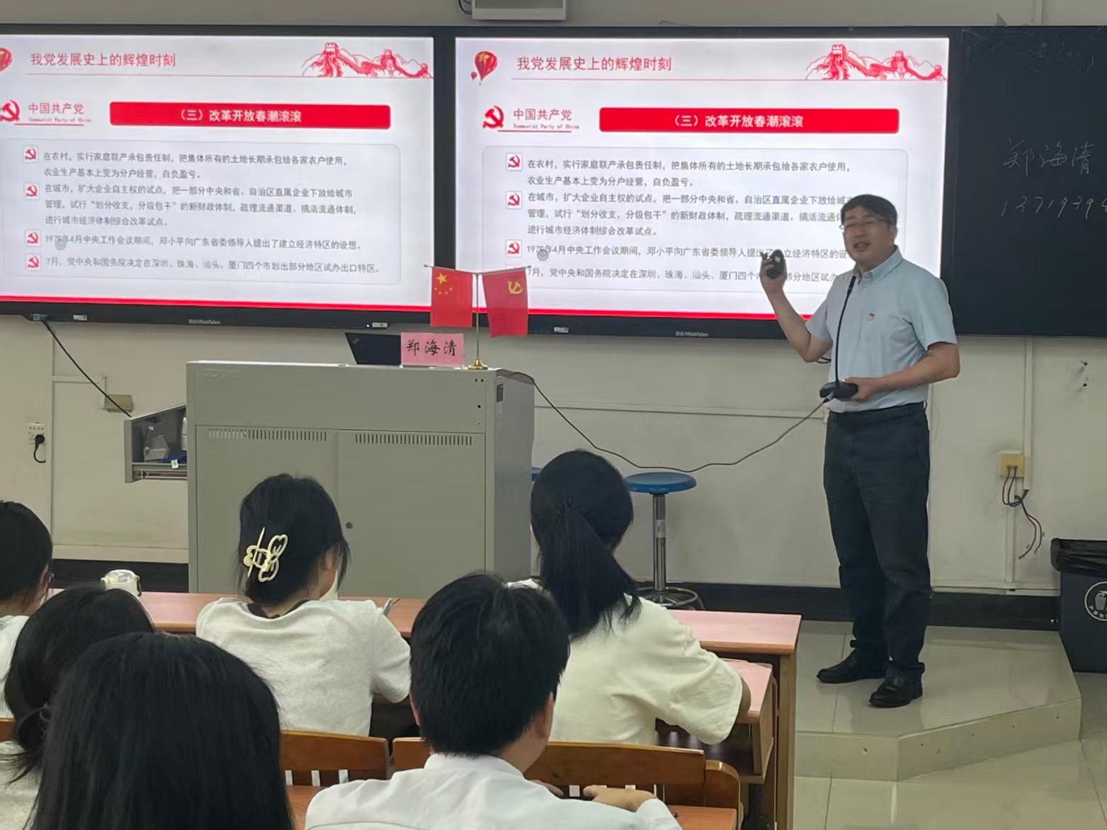 学院党总支书记郑海清为本次培训班第一讲授课,围绕“深入学习贯彻党的创新理论,端正入党动机,坚定理想信念”主,引导学员从思想上正本清源、固本培元,筑牢信仰之基,补足精神之钙,把稳思想之舵,为学员们上好入党教育“第一课”。