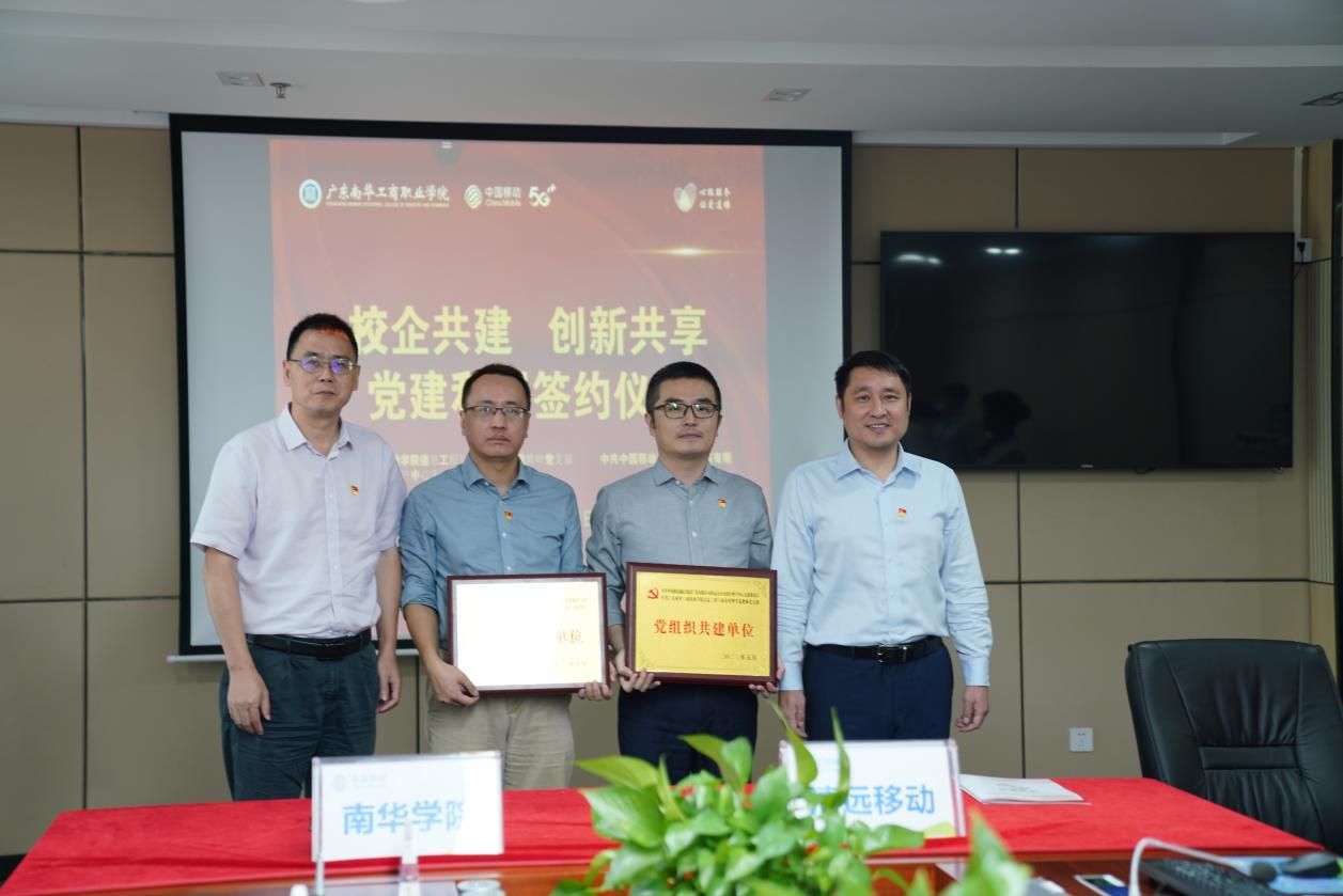 为深入学习贯彻党的二十大精神,积极构建“资源共享、优势互补、互相促进、共同提高”的新时代党建工作格局,加快推进信息工程与商务管理学院教师党支部党建高质量发展,发挥党建引领作用,5月25日,广东南华工商职业学院党委副书记严新、信息工程与商务管理学院支部书记李新带队,信息工程与商务管理学院教师党支部前往清远移动参观学习,并与清远移动政企客户中心党支部开展“校企共建、创新共享”党建和创签约仪式。签约仪式由信商学院教师党支部书记廖大强与移动政企丘毅书记共同完成,广东南华工商职业学院党委副书记严新和清远移动副总经理赵亮见证。