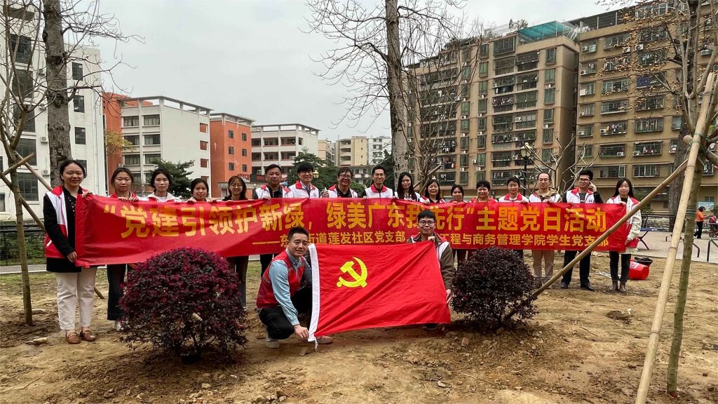 2024年3月21日上午,信息工程与商务管理学院学生党支部赴清远市东城街道莲发社区党群服务中心与东城街道莲发社区党支部联合开展“党建引领护新绿,绿美广东我先行”主题党日活动。