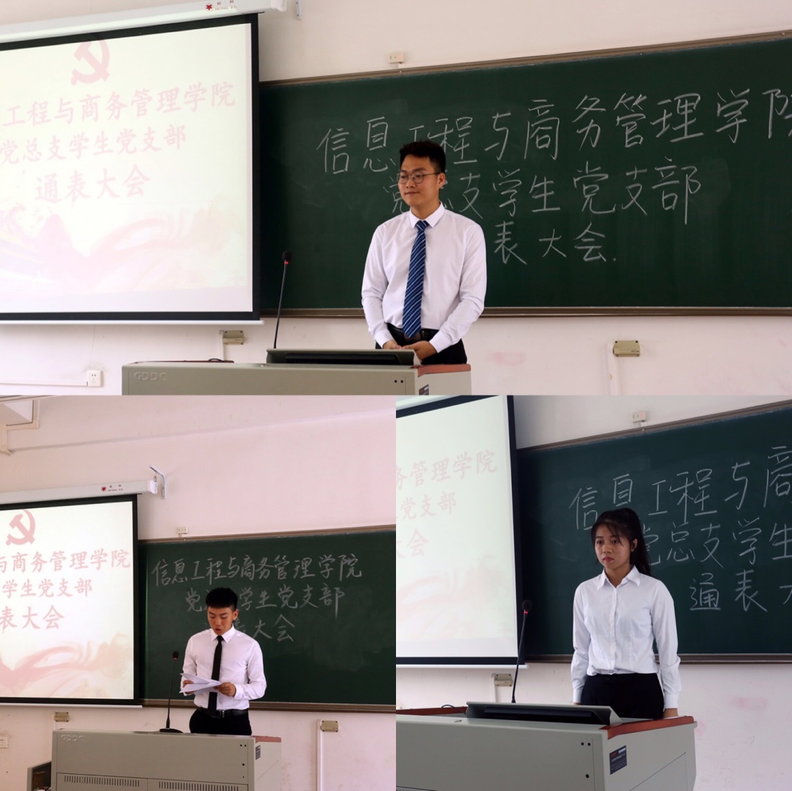 大会中,首先由每位发展对象做自我介绍和个人基本情况进行汇报,针对自己的学习、生活、工作经历,申请入党前后思想与行为上的情况作汇报。随后由培养人老师和在场的党员老师讲述对汇报人的发表意见,表明态度。会中,党员老师们向32名发展对象提出了自己的希望:希望他们继续认真学习党的纲领和党的章程;希望他们紧密联系群众,多与老师、同学交流;希望他们认真学习,踏实工作,努力生活。各位发展对象汇报完后退场,在场的党员老师对32名发展对象入党问题进行无记名投票。