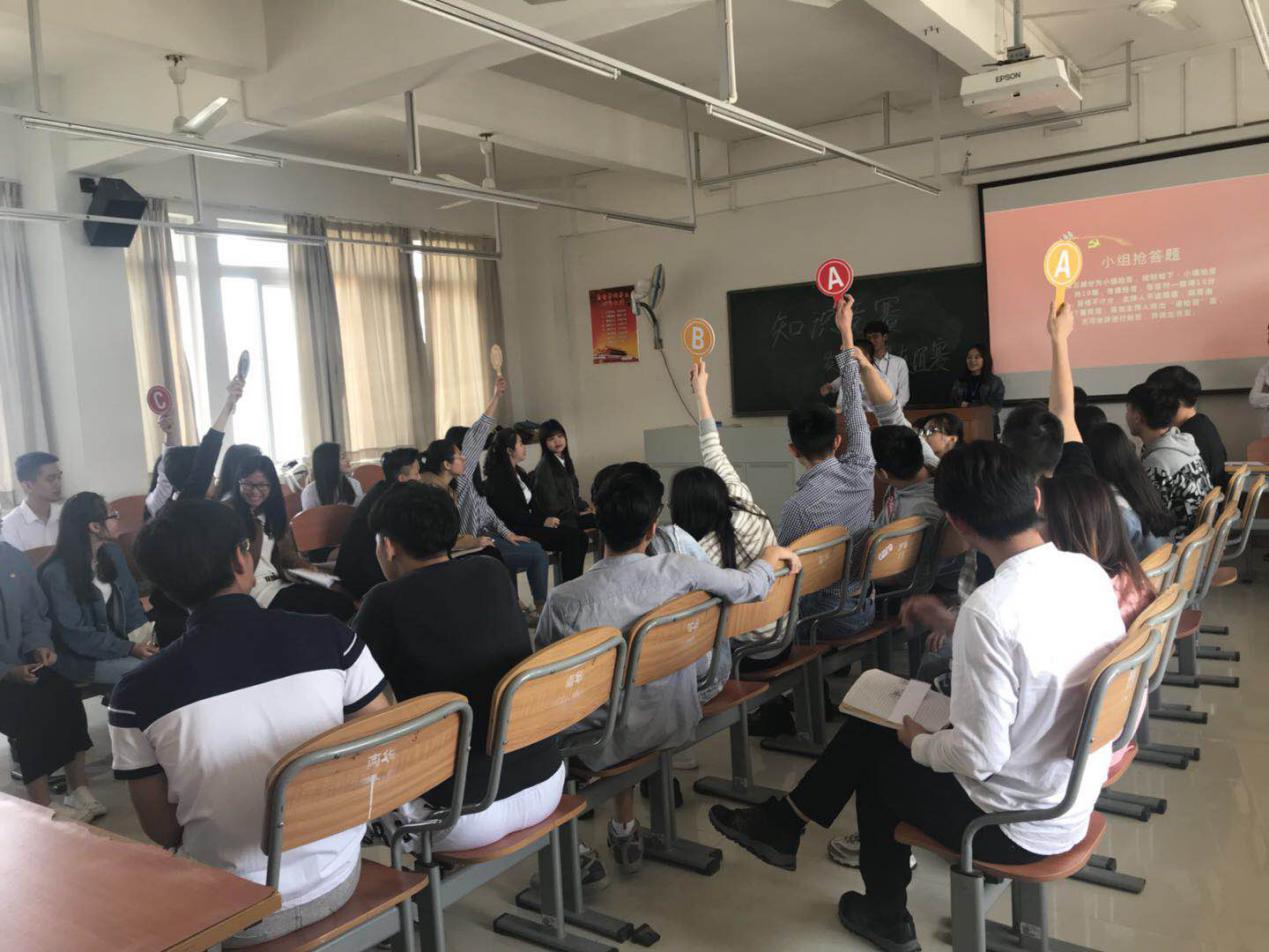 本次知识竞赛是信商学院党总支学生党支部在发展对象中深入学习宣传贯彻党的十九大精神的一项重要活动,也是积极推动十九大精神进班级的一项具体举措。知识竞赛活动有必答题、论述题、抢答题三个环节。题目内容主要围绕十九大全文、新党章内容、两会知识、最新时事政治等知识点展开。“先锋服务联盟队”由2016级发展对象共35人组建7支队伍参赛。比赛过程中,各参赛队沉着应对,准确应答,尤其在论述题中,各小组充分讨论,利用自己对历史、对时事政治的理解和敏锐度,作出了独特的回答,进一步检验汇报了学习成果,充分展示了发展对象良好的政治素质和精神风貌,掀起了学习贯彻十九大精神的新高潮。