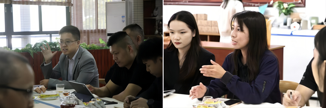李新向企业代表介绍学院各专业设置,表示学院将不断发挥专业优势,提升人才培养水平,努力培养企业需要的人才,期待未来校企双方能在人才输出、专业内涵建设、产教融合等方面开展深度合作,共同努力、实现共赢。