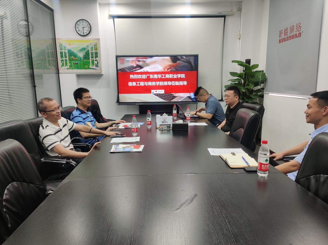 为进一步开拓学生的就业渠道,了解企业的用人新需求,深化产教融合,5月19日信息工程与商务管理学院常务副院长肖伟和计算机网络专业负责人赵志俊走访了广东轩辕网络科技股份有限公司。广东轩辕网络科技股份有限公司销售总监王才华、高校事业部总监吴嘉龙和资深工程师马巍接待了学校一行,双方进行了深入交流。
