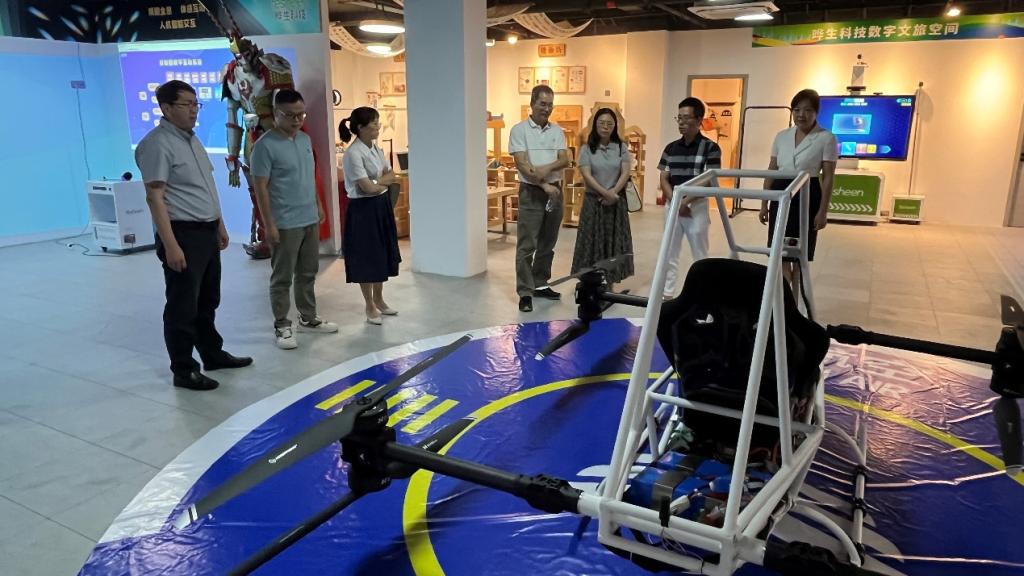晔生科技董事长叶生对调研组的到来表示热烈欢迎,并陪同参观了公司展厅。叶生董事长向调研组介绍了公司最新研发的载人无人机原型机及其研发、测试过程。