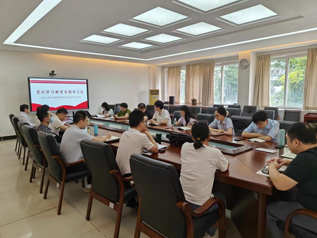 5月8日,信息工程与商务管理学院学生党支部召开党纪学习教育专题学习会,党总支部常务副书记郑海清作工作要求,会议由支部书记章小剑主持。