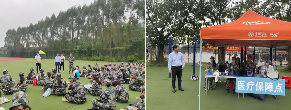 迷彩戎装,英姿飒爽;暖心慰问,关怀送情。2023级新生军训期间,信息工程与商务管理学院党总支副书记郑海清携新生辅导员李垂泵、吴文利、田佳鑫来到军训现场,检查指导2023级新生军训工作并亲切慰问承训教官和全体学生。